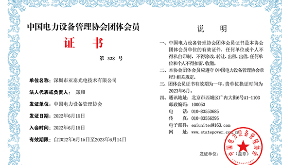 賀:深圳市亞泰光電成為中國電力設備管理協(xié)會會員單位