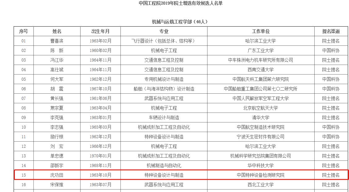 熱烈祝賀我會(huì)理事長(zhǎng)沈功田先生入選中國工程院2019年院士增選有效候選人名單