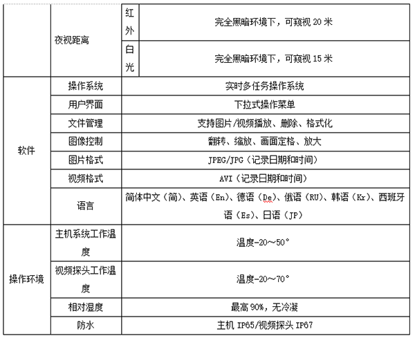 2)可見光攝像頭用于觀察內(nèi)部裂紋、銹蝕、異物等。廣泛應用于航空、汽車、船舶、電氣、化學、電力等現(xiàn)代核心工業(yè)生產(chǎn)、檢修等多個環(huán)節(jié)。采用高亮光纖照明技術,發(fā)射5000K可見光源,照度可達60000Lux以上;
