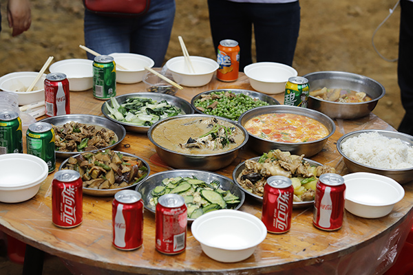 中午時(shí)分,年會(huì)開始了吃貨環(huán)節(jié),大家自己動(dòng)手、豐衣足食,各團(tuán)隊(duì)將自帶的食材及酒水、飲料等歸集一起準(zhǔn)備各自小組的午餐,各組隊(duì)成員有的切菜、有的洗菜,有的拾材,有的炒菜,一盤盤香噴噴、美味可口的家常菜西紅柿炒蛋、虎皮尖椒、年年有魚、肉沫茄子等美味可口的菜肴很快就做好并迅速被一掃而光,其樂融融,吃得好、喝得好,玩得好,好不熱鬧。