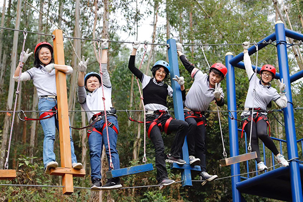 野炊結(jié)束午間休息后,年會(huì)進(jìn)入到下半場(chǎng),下午兩點(diǎn)開始,所有隊(duì)員在教練的指導(dǎo)下抖擻精神、重新整裝再出發(fā),開始叢林穿越、高空溜索、飛奪瀘定橋等項(xiàng)目,隨著高空溜索、飛奪瀘定橋等項(xiàng)目的展開,各個(gè)小組發(fā)揮各自的優(yōu)勢(shì)努力完成每一個(gè)項(xiàng)目,每個(gè)項(xiàng)目的進(jìn)行和完成極大的鍛煉了團(tuán)隊(duì)成員的堅(jiān)強(qiáng)意志、增強(qiáng)了大家的團(tuán)隊(duì)凝聚力和整體向心力,同時(shí)每一個(gè)人也感受到了團(tuán)隊(duì)合作與溝通的重要性。