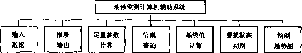 典型的油液監(jiān)測計算機輔助系統(tǒng)由數(shù)據(jù)輸入、報表輸出、信息查詢、定量參數(shù)計算、基線值計算、磨損狀態(tài)判別趨勢圖的繪制等模塊組成,系統(tǒng)結(jié)構(gòu)如 圖1.1所示。