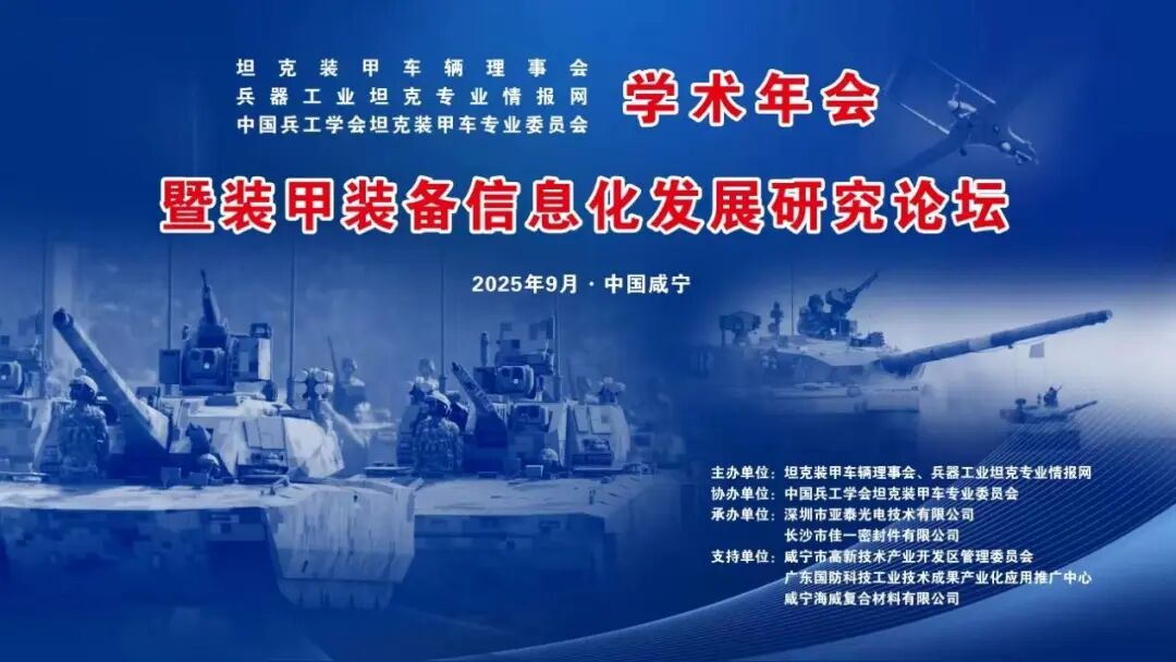 由坦克裝甲車輛理事會、兵器工業(yè)坦克專業(yè)情報網(wǎng)主辦,深圳市亞泰光電技術(shù)有限公司承辦的"2025年坦克裝甲車輛學(xué)術(shù)年會暨裝甲裝備信息化發(fā)展研究論壇"將于9月17日至19日在湖北咸寧華信大酒店隆重舉行。